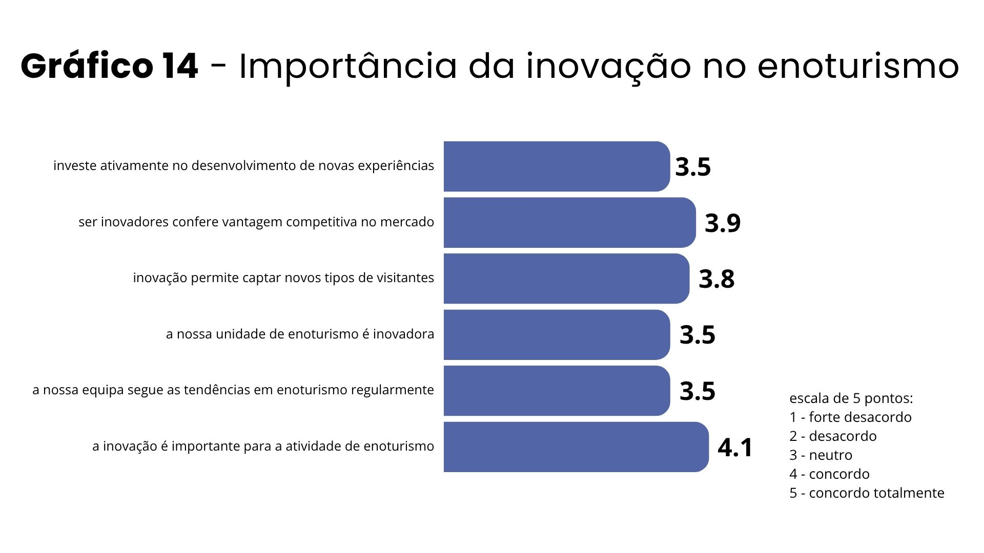 As empresas de fora da Europa tendem a avaliar o impacto do enoturismo de forma mais positiva. Em contraste, a diferente dimensão das empresas não é fator decisivo quanto à avaliação que fazem, verificando-se uma homogeneização das respostas.