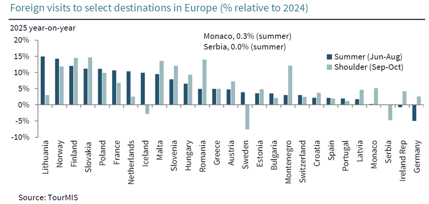 De acordo com as estimativas apresentadas no relatório, as chegadas internacionais à Europa cresceram 5,2% em 2025, após um aumento de 7,5% em 2024. De acordo com o webinar da ETC, este abrandamento não representa um sinal de fragilidade do setor, mas antes uma estabilização do ritmo de expansão, numa conjuntura marcada por crescimento económico global mais lento, inflação ainda presente e maior cautela por parte dos consumidores.